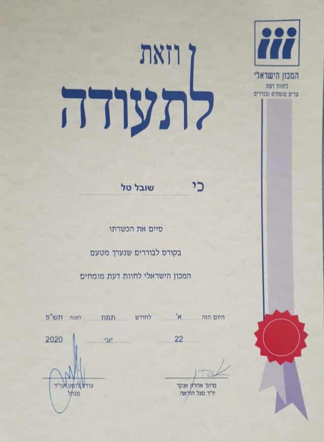 - בוגר קורס אוטם מקצועי מטעם מכללת משלב